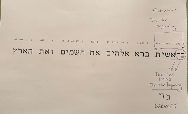 The first two letters of Barasheit (in the beginning) are BET and RESH– together they form the Hebrew word BAR. This means SON, as in The SON.