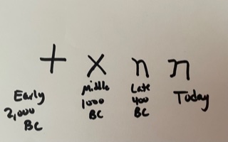 Eventually, the letter came to look like what it does today– as seen in the picture as well.