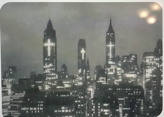 Just look at this photo (below) from 1956 when the Empire State Building and several other buildings displayed illuminated crosses on their facades during Easter. Oh how far we have sunk when we go from displaying crosses to evil goddesses.