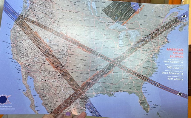 Actually, if you put the paths of the October 14, 2023 annular eclipse on the map and the path of the April 8, 2024 eclipse, it makes an X over Texas. This happens to be the second largest state in the U.S. by land mass and population