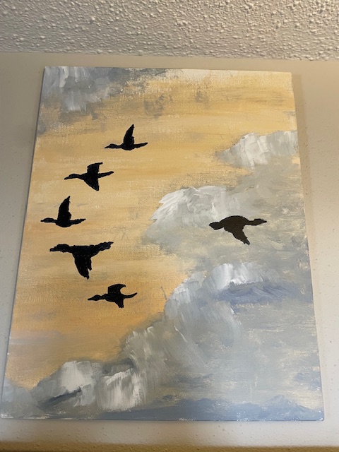 It shows one bird flying the opposite way of all the other birds. It made me think of the Covid plan-demic, the Bird Flu narrative, and life in general.