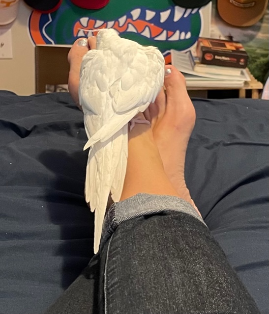 Today, as I watch this unfold, I begin to cry because I realize Casper’s actions are a reminder of something that supersedes and overcomes all the problems in my life and nation right now. Psalm 91 immediately comes to mind, especially the verse that says, “He will cover you with his feathers, and under his wings you will find refuge.” Like Casper’s wings that hover over my feet, I am suddenly reminded that Jesus has all my problems under HIS FEET. Jesus offers comfort to me in my darkest hour. As Zephaniah 3:17 says, “He will rejoice over me with singing.” Jesus guards my heart and life. He takes me under his wings and gives me shelter, much like a bird does for its babies.